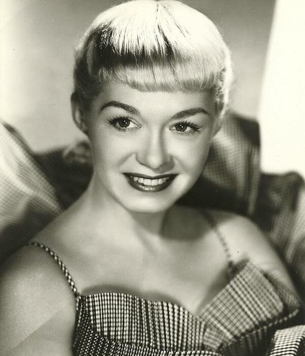 Born Shirley Luster, she began her career at age 13, in Decatur Illinois, singing and touring with Bill Oetzel’s, Ben Bradley’s, Bill Madden’s, and Dick Cisne’s society bands. After high school she changed her name to Sharon Leslie, moved to Chicago, and sang with a group led by Boyd Raeburn, then with Benny Strong’s band. When they moved to New York in 1944, she was quarantined with scarlet fever, and, heartbroken, had to return home. On March 22, 1945, she stepped into Anita O’Day’s newly vacant spot as lead vocalist for the Stan Kenton Orchestra; Kenton came to Illinois himself to reassure her mother that he would take good care of her. She changed her name one last time, to June Christy. The rest, as they say, is history.